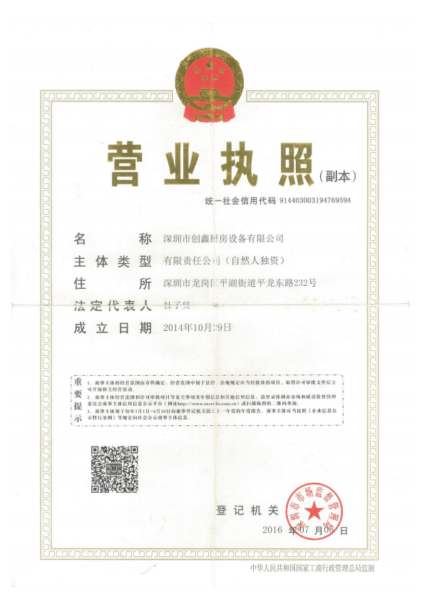 深圳市創(chuàng)鑫廚房設(shè)備有限公司